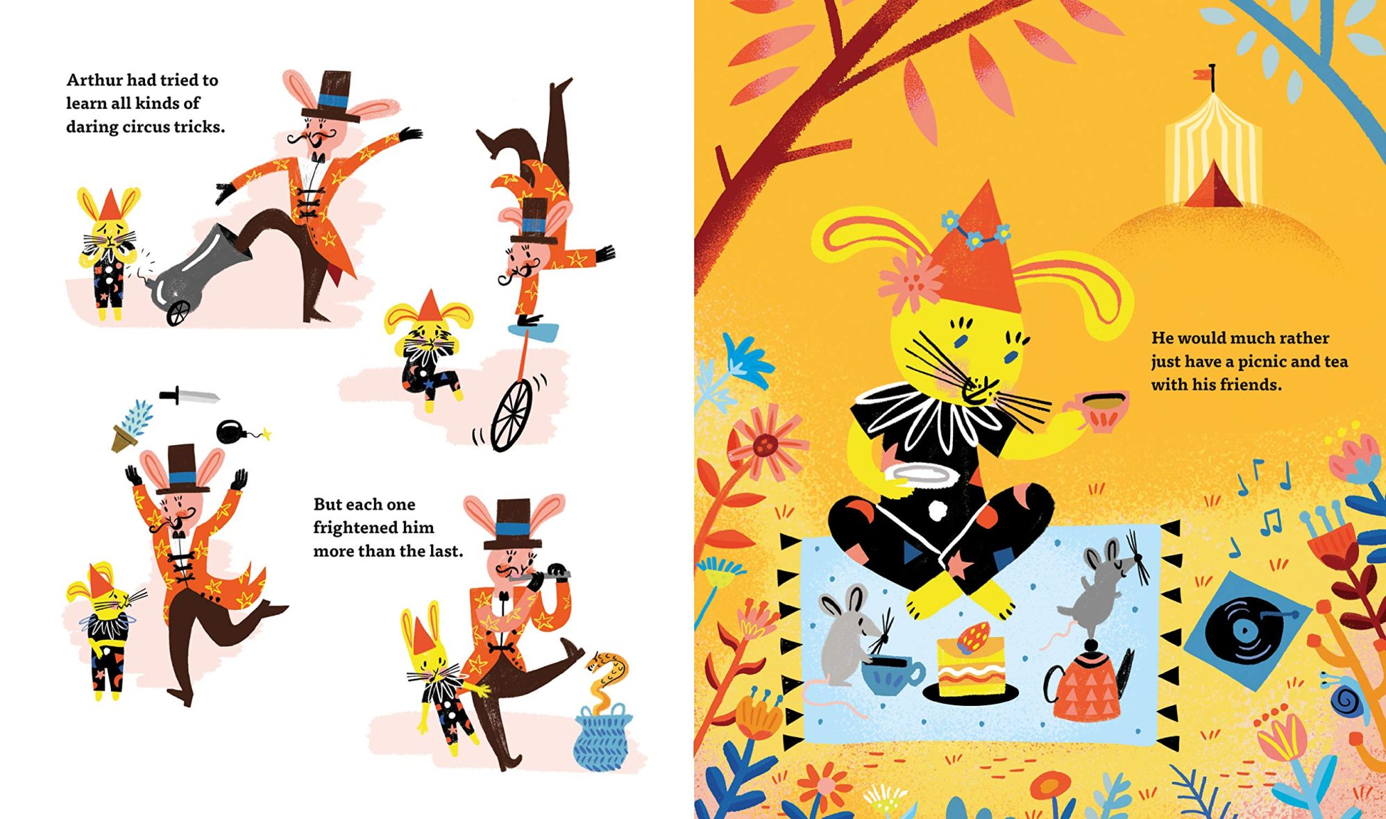 Arthur’s circus is full of daring performers. The Acrobat can soar like an eagle. The Strongman can lift a car with one finger. The Jugglers can breathe fire like dragons. But Arthur has never been brave enough to learn any daring circus tricks. So what will Arthur do when a terrifying tiger joins the circus? A beautiful story of finding strength in difference and resisting prejudice.