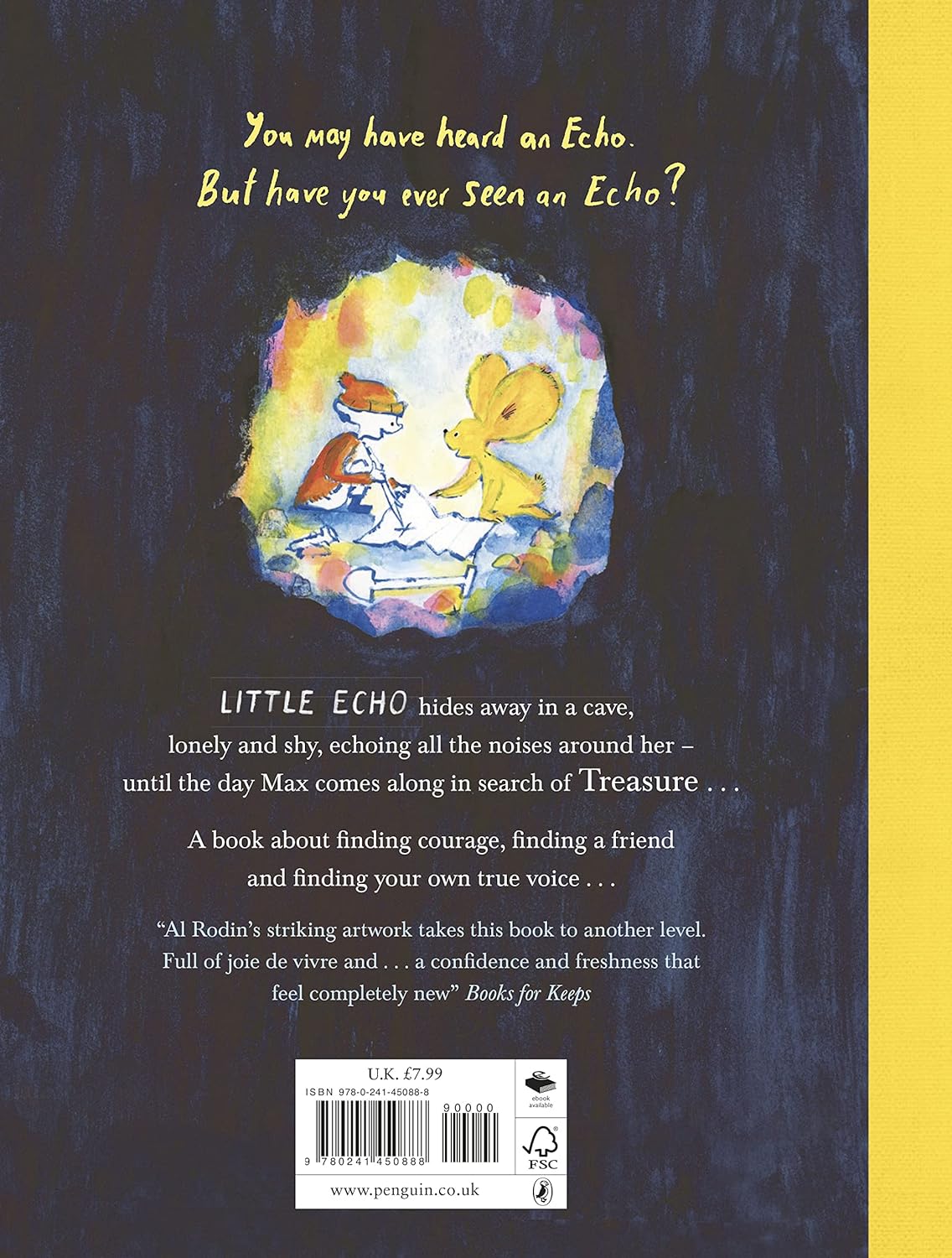 Little Echo lives alone in a cave. Shy, she hides away, echoing the noises around her. But Little Echo isn’t just shy – she’s lonely. And when Max comes to the cave one day, in search of treasure, Little Echo starts to discover that maybe she has a voice of her own…