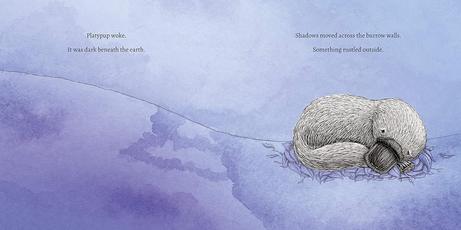 Poor little Platypup is frightened of the dark. What is that shadow? Who made that noise? But there’s nothing to fear. With his mother by his side, the little platypus ventures out of his burrow to explore. The moonlight dances on the water. Leaves whisper and gumnuts knock in the wind. Platypup discovers that his home by the river is just as lovely in the dark of night as it is during the day! And that’s not scary at all.