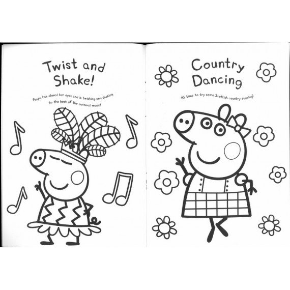 Peppa loves to dance! Find your crayons or colouring pencils and colour in the pictures of Peppa and her family and friends dancing.