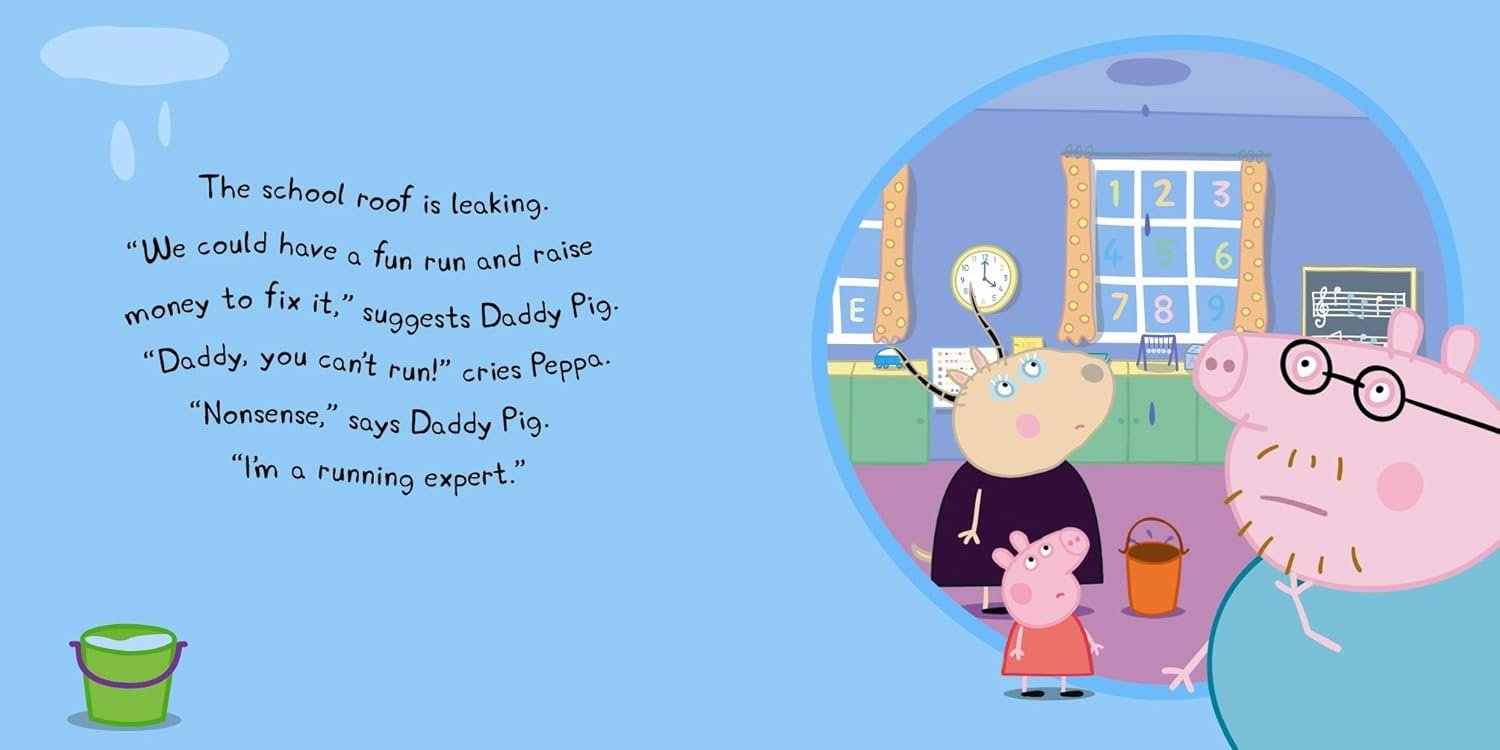 Huff, puff! Will Peppa Pig’s Daddy make it to the finish line of the fun run and raise enough money to fix the school roof?